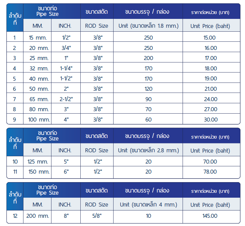 - มีหลายขนาด รองรับได้ตั้งแต่ 1/2″ – 8″