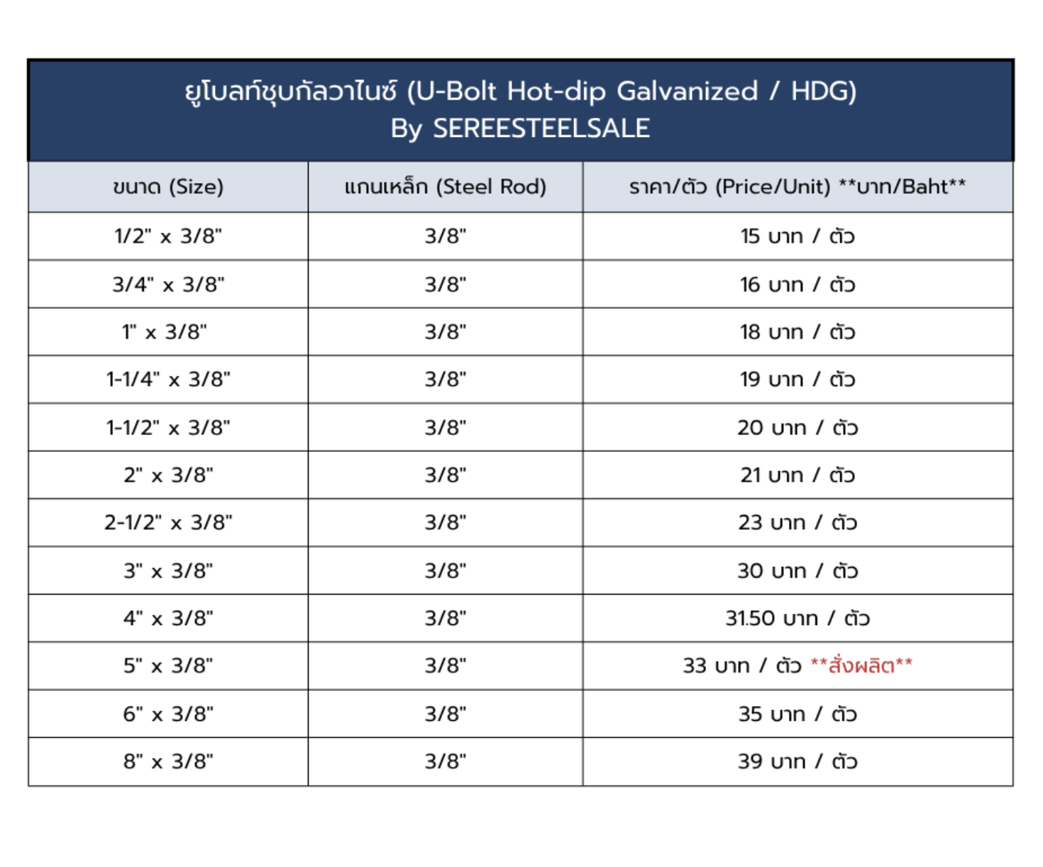 - ผิวชุบ : ชุบกัลวาไนซ์แบบจุ่มร้อน (HDG)