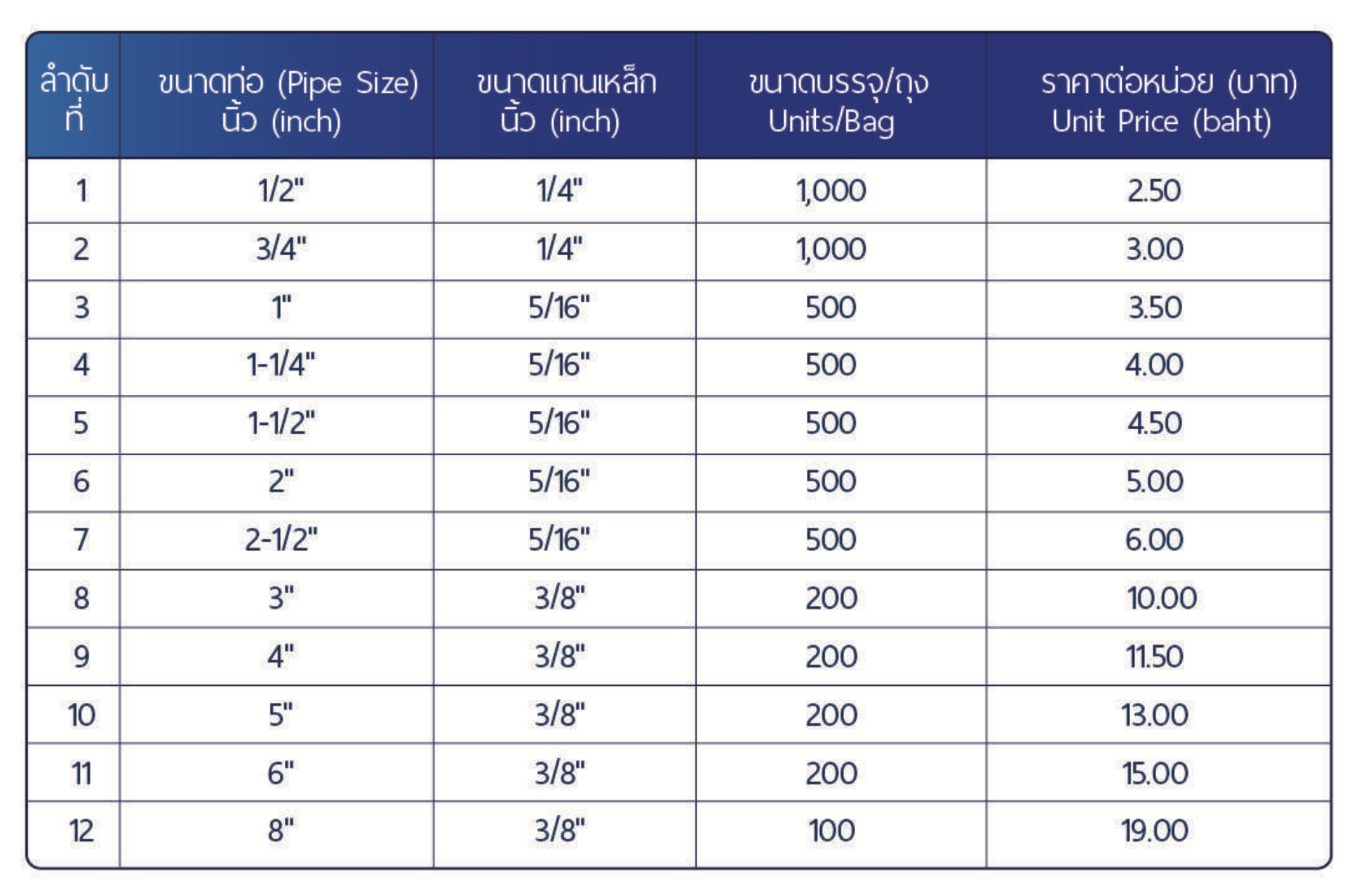 - ใช้ได้กับท่อหลากหลายขนาด เช่น 1/2″, 1″ , 2″ , 3″ และอีกหลายขนาด